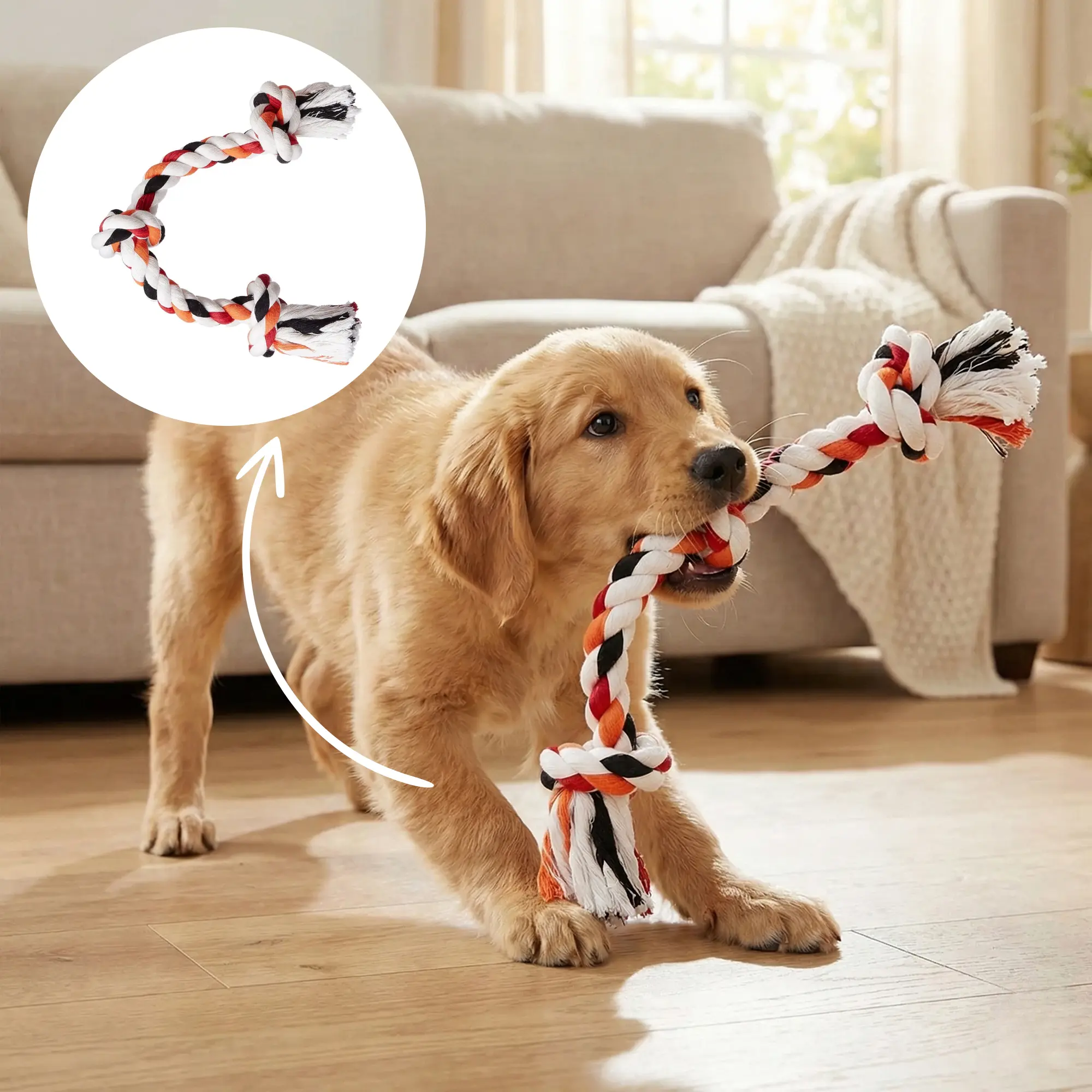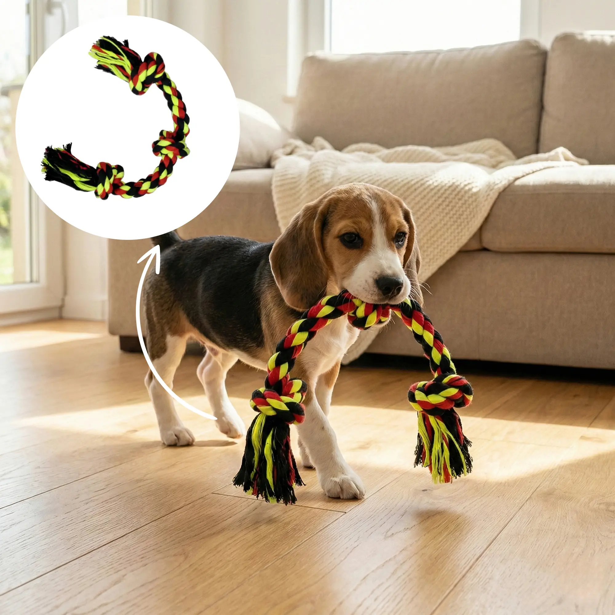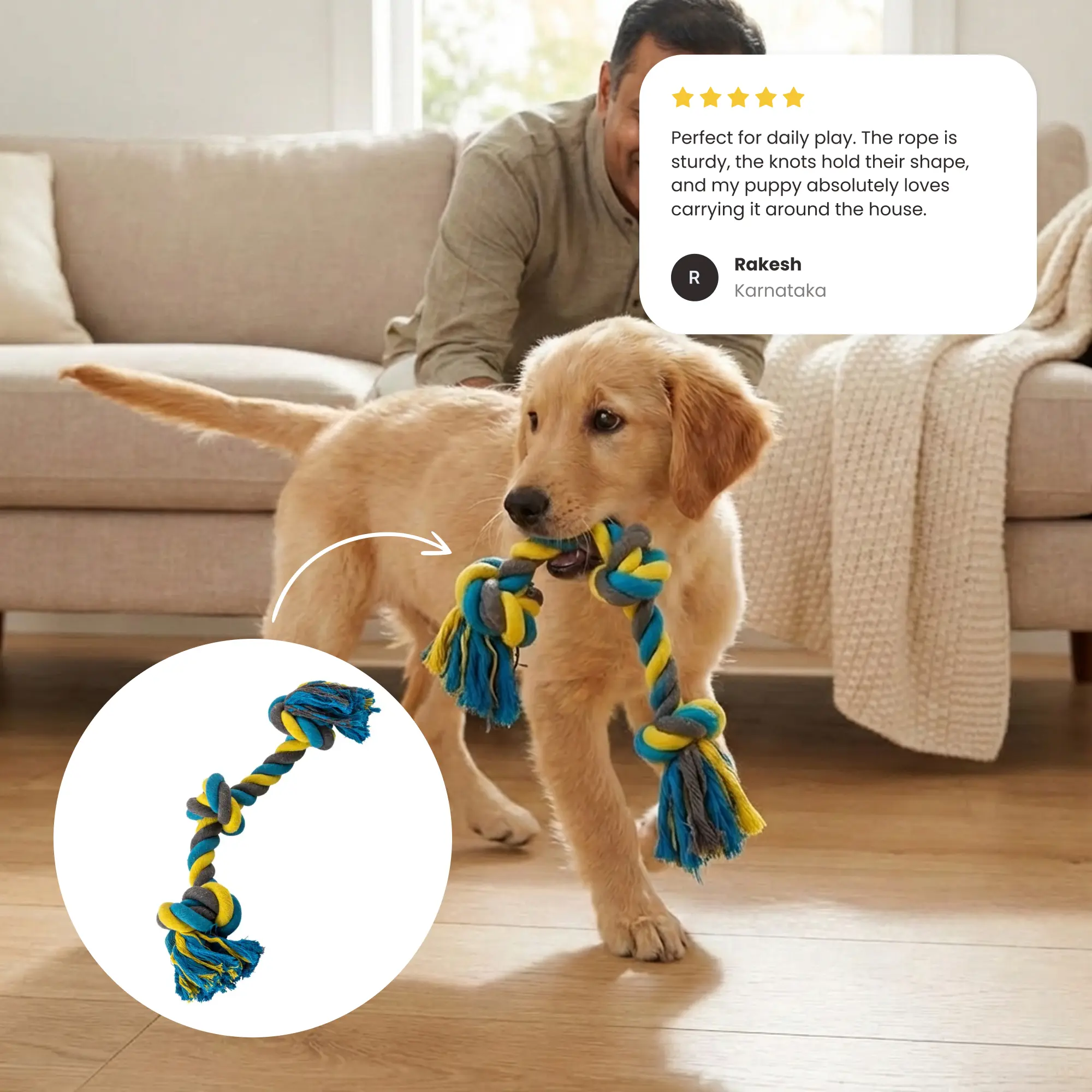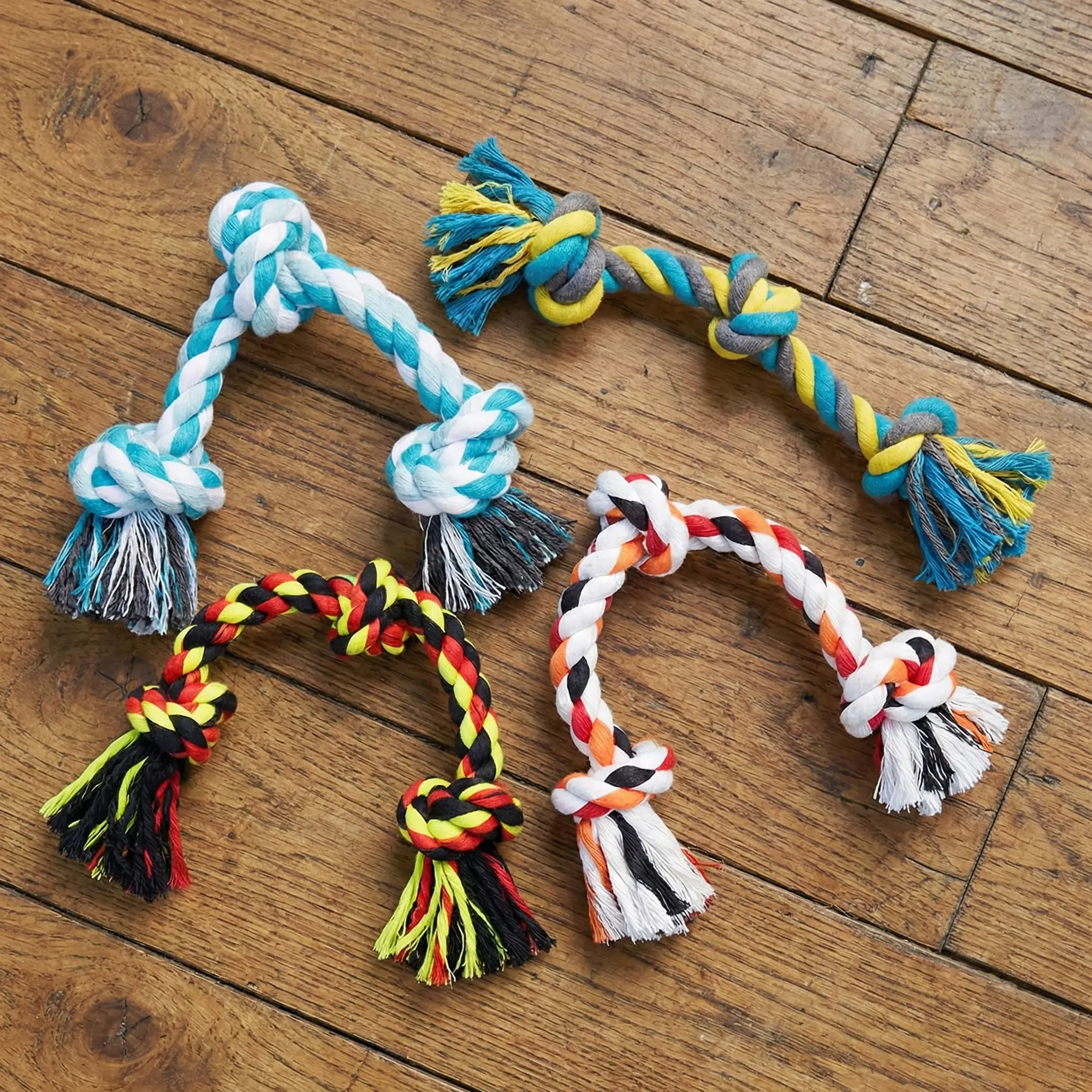 Introducing our 3 Knot Rope Toy, the perfect playtime accessory for your furry friend! Made from durable and high-quality materials, this toy is designed to withstand even the toughest chewers. The three knots provide multiple gripping points for interactive tug-of-war games, promoting healthy exercise and bonding time with your pet. Keep your dog entertained and engaged with our 3 Knot Rope Toy, a must-have addition to their toy collection.