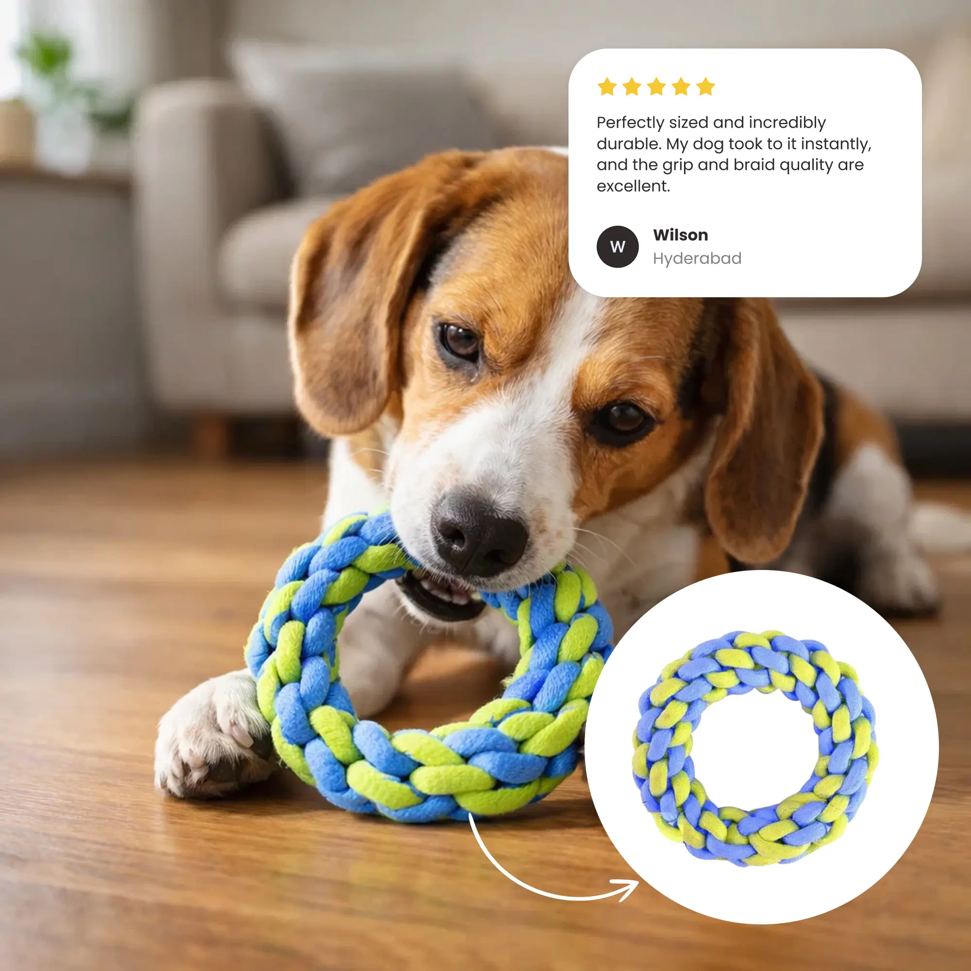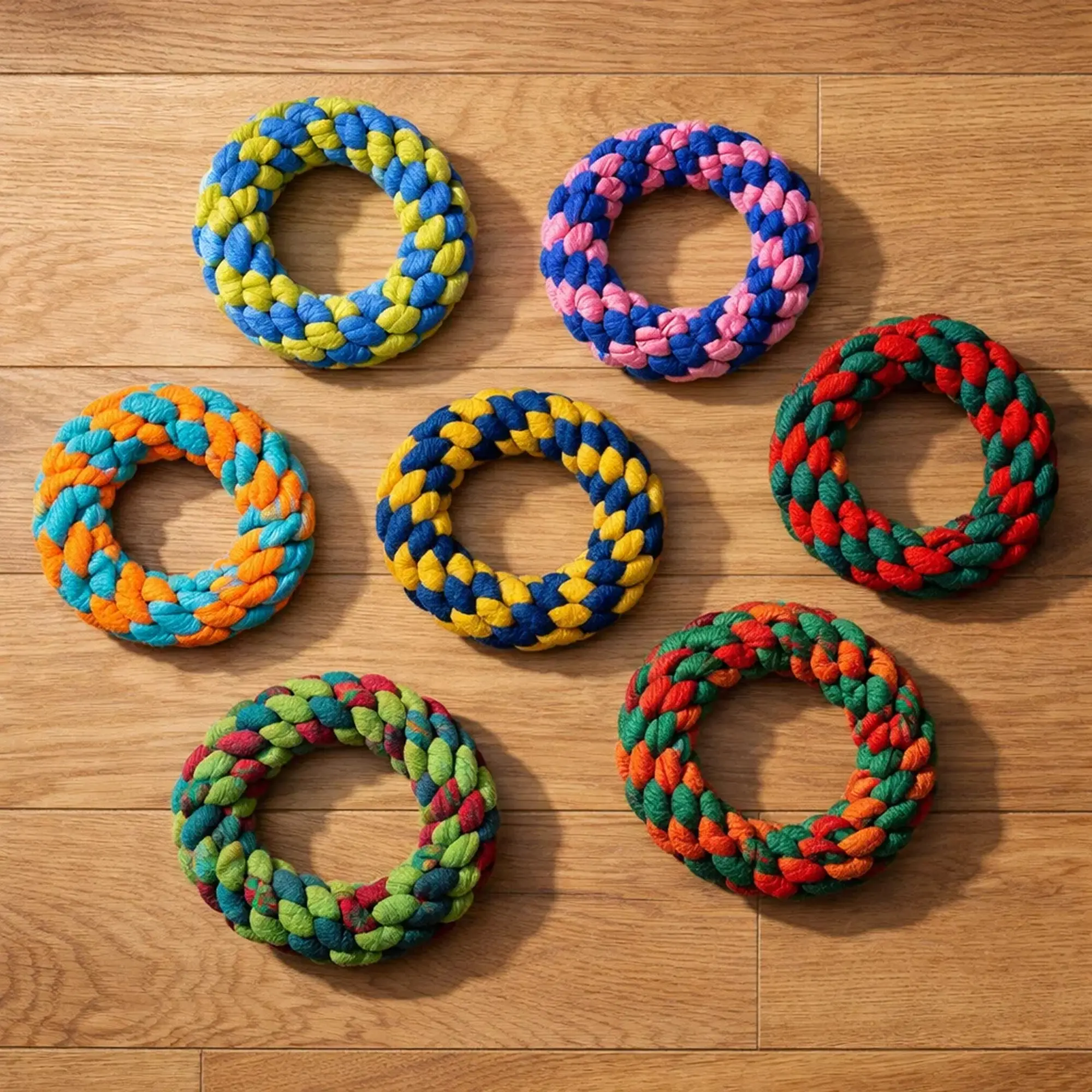 Introducing our vibrant braided ring, designed to add a pop of colour to playtime! This sturdy ball toy is perfect for interactive fun, ensuring durability while keeping your furry friends entertained. Its unique braided design not only looks great but also provides a satisfying texture for chewing and tugging.