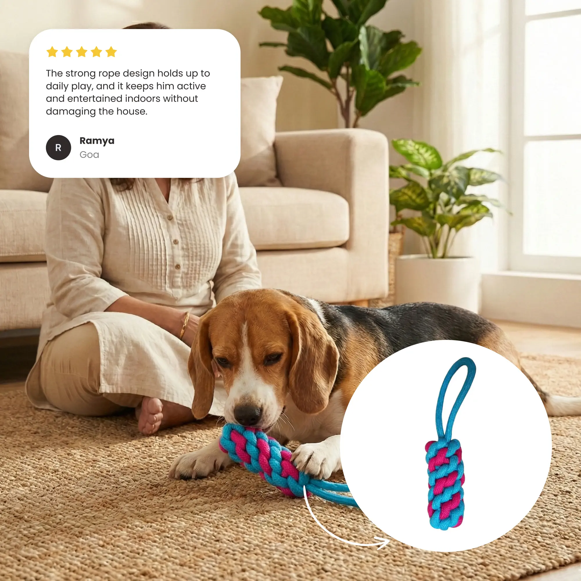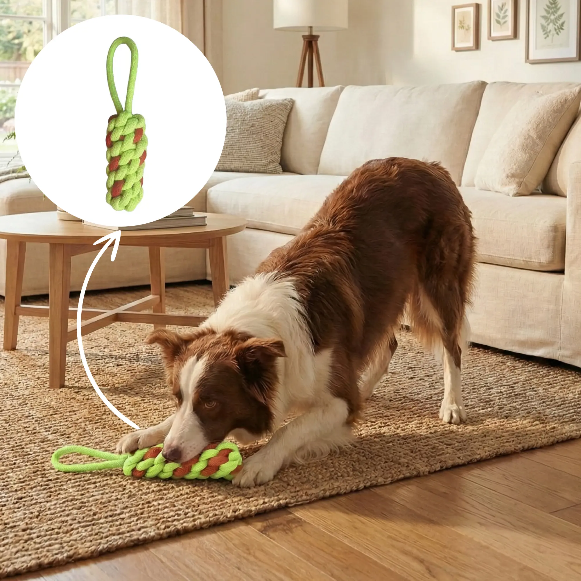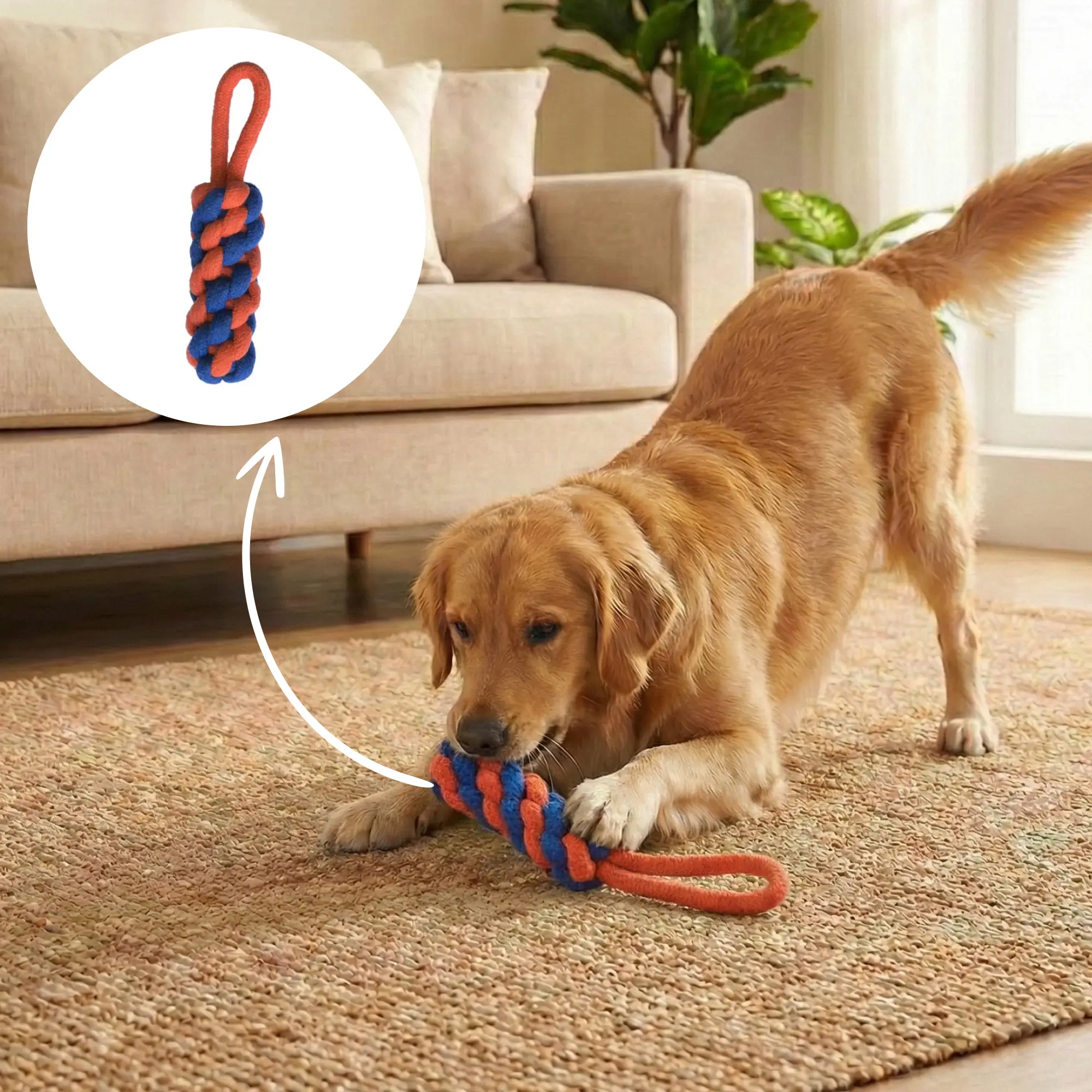 Introducing our vibrant pet rope toy, designed to keep your furry friend entertained for hours! This durable rope features a sturdy hook for added fun, making it perfect for tug-of-war games or fetch. Its bright colours and tough material ensure it stands out while providing a safe and engaging playtime experience for your pet.